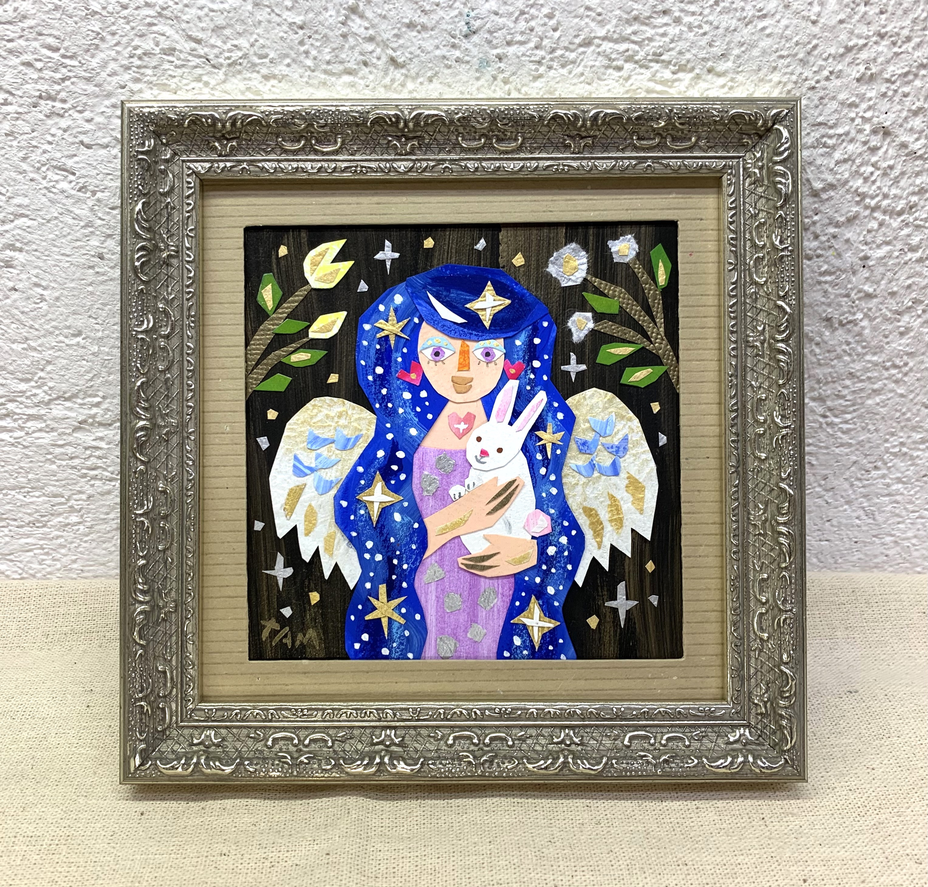 「天使とウサギ」額 17.5×17.5cm