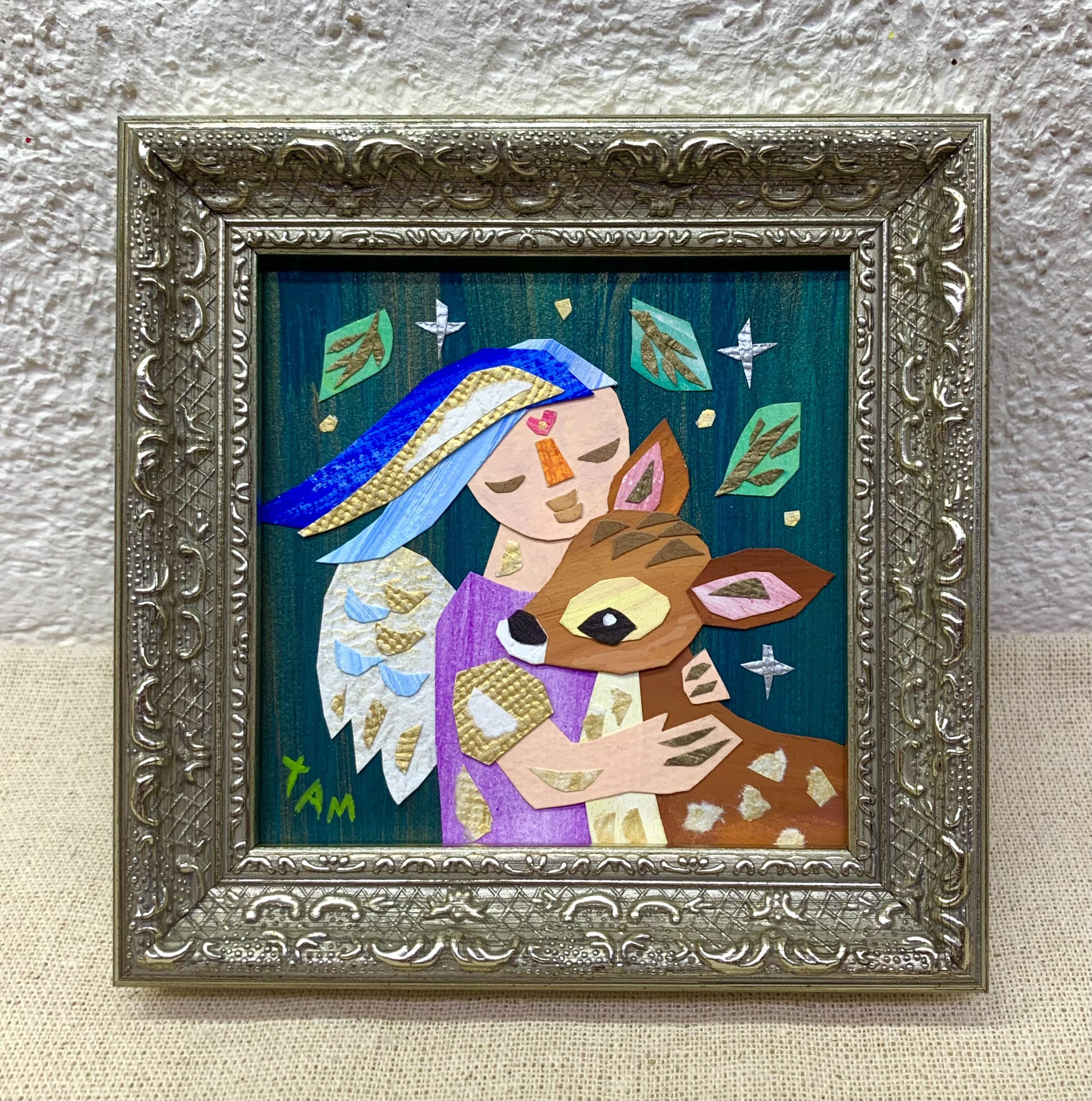 「天使と子鹿」額13×13cm